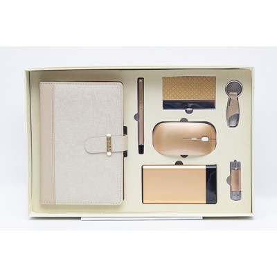 Stylo + notebook + power bank 10000 mAh + souris + porte clés + porte carte de visite + flash disque